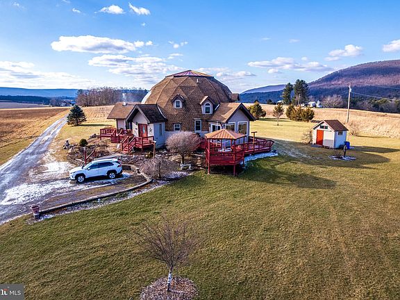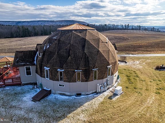 Come look at this one of a kind property. A Geodesic Dome built on over 100 acres w/ private lake & separate cottage, barn. The 360 degree views will leave you speechless. The dome has 3 BR, 4BTH, Corian countertops in the kitchen, a fireplace in the sitting area off the living room. The furnished cottage has 2 BR, 2BTH , a fireplace in the kitchen/dining room, and a screened porch. Expansive 2 level 35x65 barn will accommodate horses, livestock, car collections, etc. Reduce your expenses with the 35 Solar panels(owned). The cottage rents through AirBNB. 42 acres currently in the CREP program(payment from the program is over $5000.00 per year. Each house has a separate Generac, radiant floor heating, Fujitsu split unit. Home warranty included. Located 14 miles from Hazleton & 18 miles from Bloomsburg. For more information on the AirBNB Cottage look for Rustic Cottage in Zion Grove on AirBNB. Each house has it's own well. 24 solar panels are for the Dome and 11 panels are for the Cottage. The solar panels are currently covering the entire electric bill. Showings by appointment only.