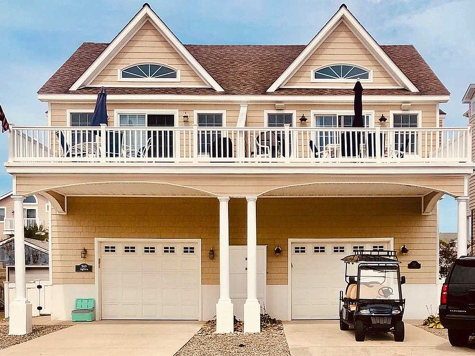 Better than new, this immaculate townhome located close to the bay, beach and steps to town is one of very few on Seven Mile Island that provide 5 bedrooms and 3.5 baths, expansive living room with cathedral ceilings, brand new kitchen, new heated gunite pool, an additional family entertainment space, full size laundry room, large garage with ample storage and a private fenced in rear yard. New owners have remodeled and professionally decorated the entire townhome inside and out! Situated on an oversized 58' x 110' lot, this townhome is several feet wider and provides expansive living. After spending just five minutes in this home you will notice and greatly appreciate the difference. Through the front door of this home and off to the left sits the very convenient laundry room with full sized washer and dryer, utility sink and a linen closet. To the rear of the first floor sits two bedrooms and the first full bathroom is right outside both bedroom doors. Another great feature of this home is the location and design of the stairwell. Hardwood all the way up, located in the middle of the home and staggered with multiple landings, all uniquely designed to maximize living space. This is another feature only allowable because of the oversized lot. Located on the second floor is the gem of the home, a huge light filled living room with hardwood floors, gas fireplace, multiple windows, sliding door and cathedral ceilings. It s the largest on the market today and provides the ability to entertain without congestion and makes a noticeable difference. A brand new kitchen with white shaker cabinets, quartz countertops and a bar for extra seating has just been completed. A separate dining space comfortably seats the whole family. Off the living room is a large fiberglass deck with great views of the bay and seating for 8 with a natural gas grill perfect for evening meals. Right beyond the kitchen sits the newly remodeled powder room. To the rear of the second floor is the large master bedroom equipped with ensuite bath, walk in closet and a covered fiberglass deck great for relaxing and viewing the new backyard pool. This entire second floor is finished with recently sanded and stained solid hardwood flooring, and the spacious layout will provide you and your family all the room you could possibly need. The third floor is also unique because it has two additional bedrooms, a full bathroom, and a second family entertainment space complete with a new built in bar cabinetry, beverage refrigerator, quartz counter and TV gaming center. This additional family space has its own private fiberglass covered deck. Off of each bedroom is a sliding glass door that opens to a fourth fiberglass deck with views of the bay and sunsets. A private fenced in backyard with pool and waterfall, outside shower, covered patio, underground sprinklers and landscape lighting make it a vacation oasis. There are several places to lounge outside with multiple seating areas by the pool and on the 4 decks. Additional features included in this property include a one and a half car garage for storage of bikes and beach gear.
