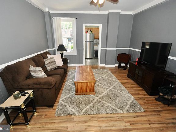 BACK ON THE MARKET! So much cheaper than renting! This two-story brick row home offers a large, welcoming roofed front porch to enjoy the weather outside, with shelter from the elements. The current owner reversed the living arrangement, making the dining room and living room standard floor plan reversed, to suit individual needs. The living and dining room offer a very open concept, making the overall appearance so much more spacious and inviting. The kitchen is merely a working kitchen, but the bonus room to the rear offers room for additional storage or an eat-in area to overlook your backyard. The current owner has planted various plants so you can enjoy fresh produce this Summer. The upper floor has two very spacious bedrooms and a modern, tiled bathroom with a tub/shower combo. The basement is very open and has tiled flooring, including the back bonus room which would be great for your storage needs. There is a washer and dryer hook-up in the basement, so just order and install your washer and dryer. The entire home was rehabbed by the previous owner a little over a year ago, with new windows, flooring, electric, gas furnace, and central air conditioning. The roof was re-tarred at that time, as well. A little bit of painting will complete this home and make it a great starter or maybe a great investment home. Do the math and see the value and low payment on this one!!
