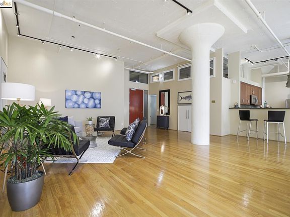 A true industrial loft, this 1923 loft was once used as part of Safeway Stores' warehouse. Large, open kitchen with island and gas range, in-loft laundry, hardwood floors, secure parking beneath served by an elevator. Converted to live/work lofts in the early 1990s, Fourth Street Loft's 37 units now form a stable and congenial community with excellent access to public transit including Lake Merritt BART, ferry to San Francisco, AC Transit and free shuttle up Broadway. Cafes, restaurants, pubs, shops and entertainment including a movie theater and Yoshi's jazz club re all within easy reach along the waterfront. Oakland was booming when the Jack London District began to serve as the distribution point for California's abundant produce, and the original produce district still functions from its bustling docks near Broadway. Adjacent loft also on the market #207; both offered by Stafford Real Estate.