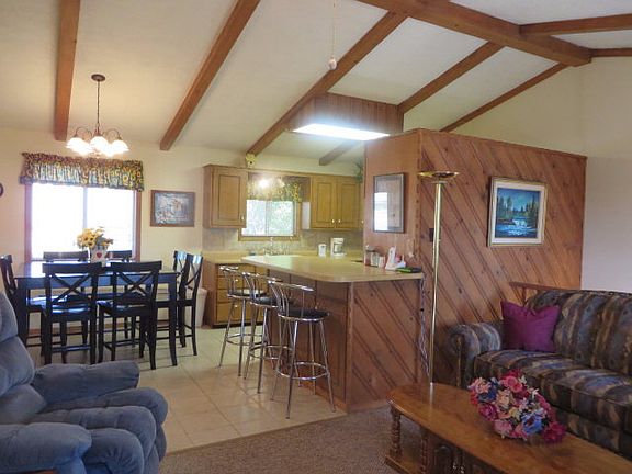 Quite nice 5 bedroom, 3 bath, fully furnished (minor exclusions) home. Two living areas. Upstairs has 2 bedrooms, 2 baths. Downstairs has 3 bedrooms, 1 bath, separate living area with a fireplace. Covered deck with nice pine tree views. Excellent rental possibilities as an option.