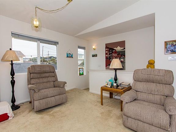 Location, Location, Location! This home is within 8 blocks of the long sandy beach! It has a peak of ocean view, but the proximity to the beach is a definite asset. Newer home (built in 2003), with a reversed floorplan. Guest bedrooms and full bath on the bottom floor. Great room, kitchen, master bedroom, powder room and master bath upstairs. 2 walk-in closets in the master bedroom! Kitchen is open to the great room, has tile counters, a breakfast bar, and all appliances are included. This home is perfect for a vacation home or a permanent home that feels like a vacation!