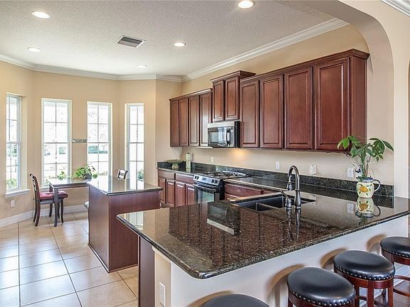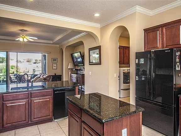 PRICED TO SELL...This popular Aspen model home not only has full solar it is on a Premium lot offering both privacy and views! This 2 bedroom/2 baths plus den & tandem 3 car garage offers flexible space to customize to your lifestyle. Designed with entertaining in mind...Enjoy gathering in the expansive living/dining room combination with hardwood floors & plenty of natural light. Triple sliding doors provide an extension of your living space from your screened lanai. A poured pad is pre-wired for a spa and/or summer kitchen. The gourmet eat-in kitchen is fully equipped with an island, breakfast bar, energy star appliances, granite counters, designer cabinets & huge walk-in pantry. The smart space with built-in desk area & extra storage is plumbed for a utility sink and the large capacity W/D do convey. The master bedroom ensuite boasts a granite top, dual sink vanity, soaking tub, separate glass framed tiled shower and huge walk-in closet. The 2nd bedroom is on the opposite end of the home ensuring privacy for owners and guests alike. Home includes designer details like tray ceilings, 8 ft. paneled doors & archways. HOA Fee includes Lawn/shrub maintenance, expanded cable package, internet, landline, home monitoring, gated entrance. Amenities include an athletic center, full-service restaurant/bar, indoor/outdoor pool & spa, poker lounge, pickleball & bocce ball. Don't miss the chance to own this beautiful home and start living your BEST LIFE! Call today for your private tour.