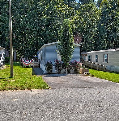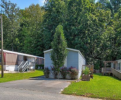 great condition, well maintained home, open floor concept in living/dining/kitchen area, large master with huge walk in closet and private bathroom, down the hall is laundry hook ups, 2 more bedrooms and 2nd full bathroom. shingle roof, vinyl siding, 10x30 front porch, 10x8 back porch, 10x20 privacy deck leading to 7x7 shed that conveys with the home, raised garden bed, blueberry bushes, pear tree, rose bushes, rock walkways, repaved parking pad 2021, humming bird garden also attracts tons of beautiful birds to property. if buyer keeps home in the mobile home park there is a community pool & playground as well as A rated school district and 4 miles from lake wylie boat ramp access