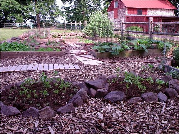 Classic PA German stone farmhouse with extreme character and spacious addition (doubled original house) which includes a cathedral ceilinged/beamed great room; large master bedroom and spa bathroom, office, completely custom built kitchen, extensive landscaping, stocked pond, 3000 sq equestrian barn , older stone garage/barn; dressage arena; fenced pastures and full cross country jumping fields on 22+ acres. VERY PRIVATE. Also: greenhouse, full banked basement, a/c; woodstove (able to heat entire house) beamed dining room and beamed kitchen; full front porch, beautiful flagged terrace; organic gardens; orchards; hardwood floors throughout ( pine and oak). All modern conveniences within old charm