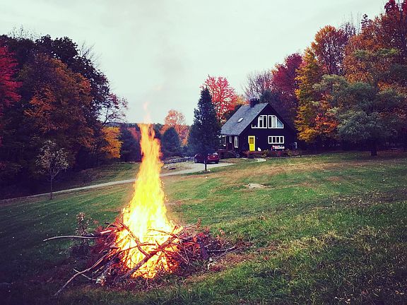Just 2 hours from NYC, our light filled 1700 square foot home is situated on 7 peaceful and private acres surrounded by meadows, trees and stone walls. A long driveway leads to our home, perched on a hill with beautiful views of the Catskills. Suitable for couples or families (no more than 4 adults total). An open floor plan with floor to ceiling windows, an open fireplace and a kitchen equipped with a Blue Star 6-burner professional oven/stove. A large deck with two comfortable loungers, a large table and a fabric shade to provide partial cover from the sun. A front deck with a Weber gas grill. The master bedroom with a king size bed and private bathroom is upstairs and is open to the main floor below. The second bedroom (queen bed) and third bedroom (two twin beds) are located on the bottom floor both have direct access outside via sliding doors. The newly gut renovated bathroom downstairs features a waterfall shower. The property has plenty of space to explore. In the spring/summer/fall, we mow paths among the long grass meadows filled with wildflowers and wildlife. A fire pit with a Weber charcoal grill. Tenant pays for propane, electric, cable, snow-plowing (if applicable). Owner pays for firewood.