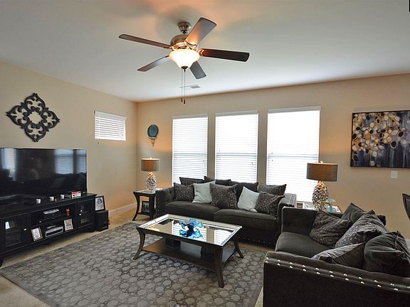 Great location! Upgrades - granite counter tops, staggered maple cabinets and brushed Nickel knobs ( handles). Black smooth top stove and walk in pantry too! Open floor plan. Extra cabinet from garage to great room. (Storage) Big backyard w/ wood privacy fence. Laminate hardwood in foyer, 2 story foyer, tankless water heater. Bring the family and move right in!