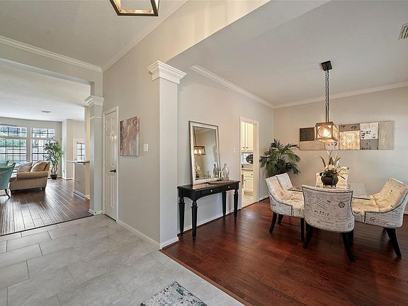 Spacious one-story home with four bedrooms and two full baths with hard-to-find 3 car garage located in the heart of Alden Bridge in The Woodlands. The family room with fireplace opens to the sunny kitchen. The formal living area or spacious study is complete with French doors. The sumptuous master suite is accented by a bayed sitting area that opens to a luxurious bath with HUGE walk-in closet. Wood and tile floors in living areas. Granite counters in the kitchen were recently added. Huge fenced backyard. Large wooden deck in back with covered walkway to fabulous 3 car garage. Home is just down the block from a wonderful neighborhood park.