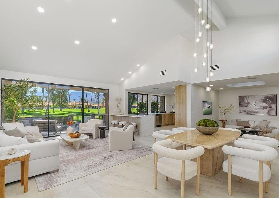 No expense has been spared on this completely reimagined 3-bedroom, 2-bathroom home plus office located in Monterey CC. This home features high-end finishes and offers an open floorplan with a spacious great room. The gourmet kitchen boasts gorgeous quartz countertops and backsplash, custom cabinets with ample storage, and stainless-steel appliances. The great room features vaulted ceilings, designer lighting, and walls of glass that open to a large tiled patio with stunning golf, mountain, and water feature views. The primary suite includes a luxurious bathroom with a large walk-in shower, towel warmer, floating vanities, and porcelain sinks. Other features include stylish 42''x42'' porcelain tile flooring throughout and fully remodeled bathrooms with new wall-to-ceiling tiled showers, floating vanities, and porcelain sinks. The patio also has stylish 42''x42'' porcelain tile and offers amazing mountain, lake, and golf course views. Monterey CC is an upscale, 24-hour guard-gated community with social amenities including a 27-hole championship golf course, 14 tennis courts, 20 pickleball courts, 4 bocce ball courts, a fitness center, and 37 pools and spas. This property has been staged by Fix Interiors (FixInteriors.net).