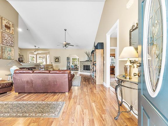 This home is a one of kind, 3 bed, 2.5 bath, gardeners dream, private back yard with water view, Dock, deck with firepit minutes from the beach. The home has been meticulously maintained; you would think it’s a new home. When you pull into the concrete driveway with a large 24’ x 24’ side load garage, the property is well manicured with fruit bearing trees, and hand laid brick borders and walkways. As you enter the foyer with cathedral ceilings, you view the open floor plan of the dining area to the left, Livingroom straight ahead looking into the Carolina room and the eat-in kitchen off the Livingroom. The kitchen has stainless steel appliances, plenty of cabinets, a breakfast bar and bay window area for an eat-in kitchen table. There is no carpeting in this home, the wet areas have ceramic tile floor and wood laminated flooring. The fireplace in the Livingroom has a remote and runs off propane. The main bedroom has plenty of room for bedroom furniture and a sitting area, tray ceiling and two Walkin closets. The main bedroom’s private bath has double vanities, shower, and a jetted tub. The other two bedrooms are on the other side of the house providing a split bedroom plan for privacy. The home has an open airy feeling with 9’ ceilings and lots of light. The private back yard is an oasis with a lake view, privacy, patio, large garden, fruit trees, dock, and a deck with a firepit. The owners purchased the land between the backyard and the lake so you will own up to the water’s edge. Every inch of this property, inside and out has been well maintained hand built by the owners to a high standard. This home is truly one of a kind, please see additional upgrade list and other information on this one of kind private kingdom. Furniture is negociable, The home is close to restaurants, entertainment for all ages, shopping adventures and is still conveniently located for your everyday needs and in a private community. Preferred Lender is offering a lender credit. Square footage is approximate and not guaranteed. The buyer is responsible for verification. This fantastic home can be yours, Schedule you’re showing today!
