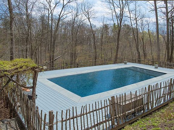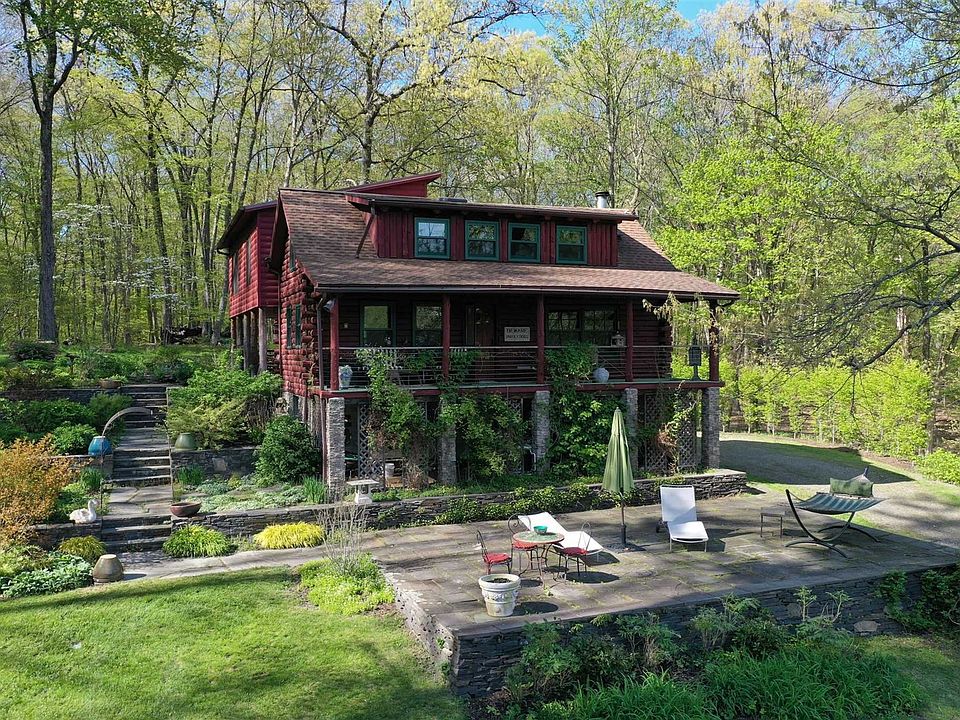 Welcome to your country home in the heart of Rhinebeck. Privacy abounds at your secluded gated home on almost 17 acres. An Adirondack-style chalet beautifully renovated in 2016, it is a contemporary log cabin. Enjoy swimming in your pool on hot summer days while looking out over the beautifully manicured lawns and your own private pond. The kitchen features stainless steel appliances along with a Viking stove for making amazing meals and a wood-burning fireplace to add ambiance on cold winter nights. The large living room boasts a stone fireplace and an open floor plan which includes the dining room. Upstairs the newly re-done primary bedroom has an open feel with an en suite bath. The second bedroom looks out onto the landscaped yard with skylight and en suite bath as well. There is a third room which can be used as an additional bedroom or office. Radiant heat throughout entire second floor. The large front porch allows you to enjoy summer nights overlooking your pool and pond. Designed by Michael Bird, founder, and principal of Adirondack Design, this home radiates warmth and coziness. This classic style best harmonizes the relationship of the woods with man-made structures. Minutes drive to Rhinebeck, yet nestled in a private woodsy enclave, a perfect spot to commune with nature. The home has a classic rustic, yet modern feel. There is also central air and a whole house generator. The property is comprised of two parcels. Come and see this true gem.