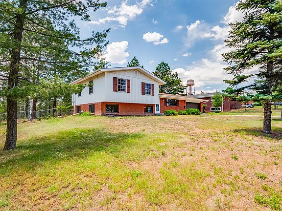 Welcome to this charming two-story home on Barranca Mesa that backs to forested county land. As you approach the property, you are greeted by a large front yard with mature trees, adding to its pleasing curb appeal. Upon entering the tiled front entrance, you are led to the spacious living/dining room, complete with built-in shelves and glass sliding doors that open up to the backyard. The wood flooring throughout the home adds a warm touch, with a wood-burning stove serving as the focal point of the living area. The long galley-style kitchen boasts tile flooring, wood cabinets with custom pantry pullouts, a tile backsplash, quartz counters with a beveled edge, and a gas stove/oven. Natural light floods the kitchen, complemented by a large front-facing window. Additionally, the main floor features a two-car garage with a room that includes a workbench and sink. Ascending up a flight of stairs, you will find two nicely sized guest bedrooms and a full guest bathroom with a single sink vanity and beautiful teal tiled shower/tub surround. The spacious primary en-suite offers peaceful views and a bathroom with a single sink vanity, tile flooring, and a tile surround.