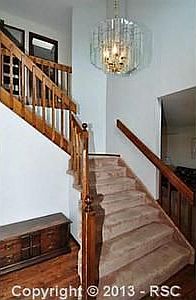 Stunning home with spectacular views in Broadmoor Bluffs. Entire front of home has a covered porch great for relaxing. Two story foyer with hardwood floors, large family room with fireplace, formal living, dining room, spacious kitchen with eat in nook that leads the private backyard. The upper level features a large master suite, three additional bedrooms and full bath. The basement has a finished rec/room with wet bar and bath. This home offers great views in a highly desired area and will not last long!