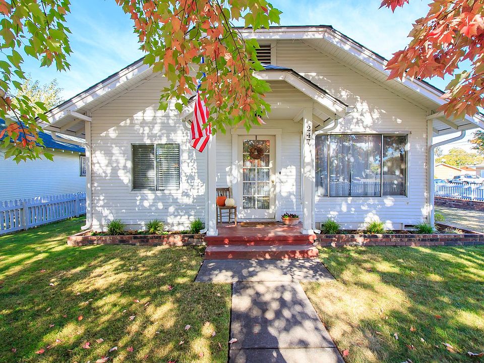 This beautiful 1925 cottage bungalow is not your typical home. It has alot of character and has been updated and well cared for. It boasts nice natural light and open living area. The kitchen has era correct tiled counter tops and backsplash w/ lots of cupboards, stainless appliances and bar nook. Nice size living room connects to a small office, play or guest room. Master bedroom has a large closet and is separated from the other bedroom by the bathroom. Full size bathroom features tile, porcelain tub and built in bench. Inside laundry room leads to back yard and studio. The detached studio is insulated and finished. Really great space with lots of possible uses also a lg. closet and attic storage. There is additional parking with alley access. Yard is fully fenced w/mature landscape, sprinklers and drip. Good proximity to schools, and stores. Come tour this home today! 30x30 parking off alley
