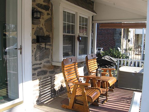 This beautiful stone front twin home has great curb appeal with it's lovely covered front porch and landscaping. The exterior will drawl you in and the interior will make you want to stay! There is a tiled entry area to the spacious living room that boasts hardwood flooring, Faux electric Fireplace and a bumped out window with aP deep window sill. Enjoy your meals in the formal dining room or the eat-in kitchen that has a dishwasher, gas oven, and microwave. The second floor offers a large master bedroom, two additional good sized bedrooms and a hall bath. The living space continues into the expanded finished basement/family room with wall to wall carpeting, powder room, plus a laundry/utility room and outside access to your private parking space and fenced yard. This home is move-in ready and the owner's will still provide a One Year Home Warranty to the buyers!