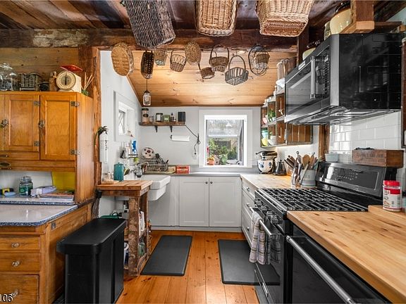 Desirable Cokesbury Location: Lovely Circa Colonial Home set on 1 acre property: This beautiful home is in its original state, much old world charm, updated eat-in country kitchen, garden window, all high-end appliances, stainless steel and butcher block counters, pull-out cabinet drawers, farm sink, gas oven, beautiful original wide plank pumpkin pine floors, exposed hand-hewn beams throughout, exposed brick walls, two Dutch doors, powder room on 1st floor, large family room offering French door leading to large 28' deck - two covered porches, Vaulted ceiling in main bedroom w cross beams, additional two cozy bedrooms, main bath w vaulted ceiling, shower has river rock stone floor, unique vintage tray sink, washer and dryer on 2nd floor expansive deck overlooking pretty private rear yard with raised garden beds, lovely perennial gardens w herbs, flowers. Updated electric, plumbing and high efficiency gas burner, one year old roof. Available on 9 1