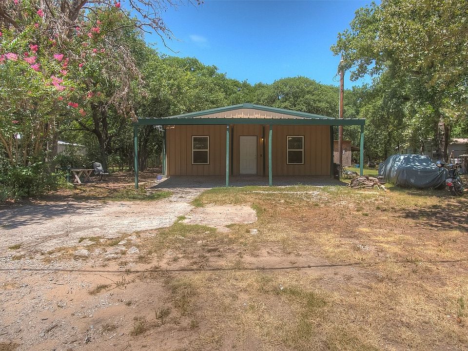 Welcome to this cute 2 bedroom 1 bath barndominium style home on almost a half acre, located on a dead end road. Stained concrete flooring, large utility room, large kitchen, living, dining with open concept. Covered parking, storage building and scattered trees on property. Hurry!! Won't last long.