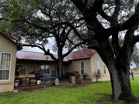 Very nice 2520 sq. f.t ,3/2 home on 17 beautiful acres! Easy highway access leads to this beautiful property with granite outcrops, 4 acre coastal field, beautiful native pasture with mature live oaks. Residence was recontructed in 2003 and has metal roof, all electric. It features a 525' deck encircling a massive oak tree. The fenced yard has large trees, unique rock garden, & 4 car steel constructed carport. Connecting L-shaped barns w/concrete floors lead out to pipe working pens. Two minutes from Mason & only 30 minutes to Fredericksburg!