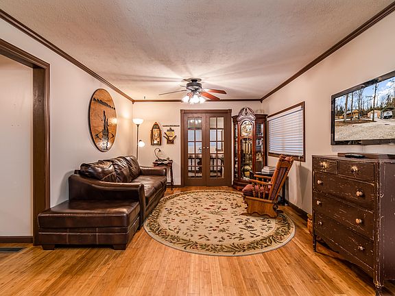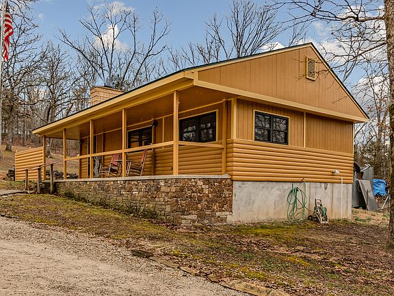 Welcome to your charming cabin at the lake! Step on the front porch, take a seat, relax; you've arrived. Walk inside to find beautiful wood flooring and crown molding throughout. Open the French doors to a master bedroom that exudes character. Just when you think it can't get any better, walk into your master bathroom. Take time to notice all the details; the tin ceiling tiles, the custom shower, and one of a kind vanity. After a long day on the clear waters of Bull Shoals Lake, you have your choice of places to unwind. Soak away your troubles in the clawfoot tub, enjoy watching all the wildlife while taking in the breeze in the spacious screened porch area, or cozy up with a book by the wood-burning fireplace. If you like outdoor space, this home sits on almost an acre surrounded by mature trees. There's covered parking for your RV and plenty of storage for all your outdoor and lake toys. Speaking of the lake, it's just down the street. Use the gravel launch area on Cox Rd. or swing around the corner and use the Taney County maintained boat launch in the neighborhood. Make this your new lake getaway or move in and enjoy the lake full-time! This home provides all the serenity you can handle! The lake life is waiting for you; there's no time like the present!