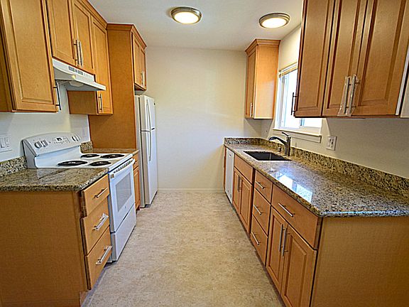 This large 1 Bedroom, 1 Bath features a new, remodeled Kitchen, with granite counters, new wood cabinetry, stainless steel sink, lighting fixtures, new stove/oven, dishwasher and flooring. The Dining Area has a new ceiling fan/light fixture too. There is new carpet and interior paint throughout, plus the new design of cordless blinds. There are big picture windows in the large Living Room, with a deep double door closet nearby. Enjoy mature trees and views of greenery when foliage occurs from the Kitchen and Bedroom! The good sized Bedroom includes a large double door closet plus a walk-in closet with built-in shelving. The Full Bath is all newly remodeled with a contemporary lighting fixture over the newer vanity, medicine cabinet, counter, sink, fixtures, contemporary tilework in the tub surround and flooring and towel rack. There is a Common Area Laundry Room with 2 folding tables, for your convenience. Also, the outdoor pool was resurfaced with an enclosed patio area. Parking is included and water and garbage are included, as well. Walk to Downtown, close to the transportation center, Smart Train, great restaurants, Rafael Theater, 24 hr. Safeway & so much more! Sorry, no pets or smoking. Thank you!