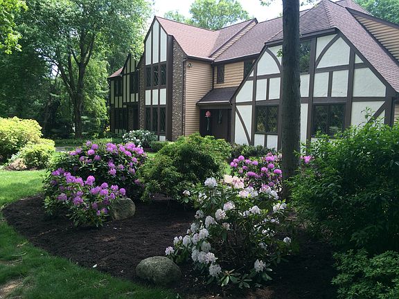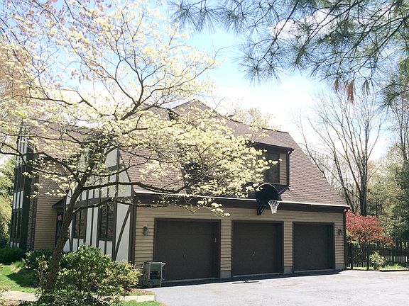 Handsome Tudor on three park-like acres with pool, gazebo, & wrap-around TimberTech deck. Freshly painted.Hard-wood flooring and marble-floored entry foyer. New circular driveway & 6-BR septic system A perfect home for entertaining: plentiful space inside & outside.The LR features a parguet floor & fireplace. The DR has a large window flooding the room with natural light, hardwood floor & a built-in china cabinet.The beamed FR is highlighted by custom cabinetry, bookcases, wet bar & a two-sided brick fireplace shared with the Den. There is a formal PR & full bathroom on this floor. The spacious eat-in kitchen with center island has a dining area opening to the solarium featuring a south-west style fireplace. The 2nd Floor features a lavish master suite w/loft, 5 more bedrooms (2 en suite). Recessed lighting.