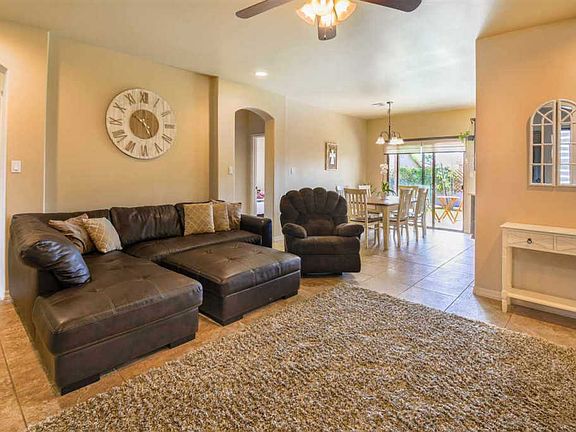 New on the Market in desirable Somerton's Valle Del Sol. 4 bedroom, 2 baths, 2-car garage. Vaulted ceilings, tile flooring throughout except bedrooms, ceiling fans in bedrooms & living room. Kitchen has a walk-in pantry and Island, dining room with sliding glass door leads to covered back patio with double-gate access. Master Bedroom has a walk-in closet, master bath has dual sinks and separate shower and toilet room. This one will not last long. Come see it today!