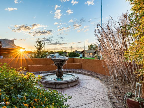 Sparkling poolCovered patioWater fountainOpen layoutPrimary suitePrivate front courtyardBuilt-in garden beds