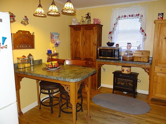 Country charm in Parker City and Monroe Central Schools!! One story maintenance free home with vinyl siding, new gutters and newer replacement windows. This two bedroom, one bath home has hardwood floors throughout, there is a breakfast bar with Tiffany style lights in the kitchen, the dining room has a vent-less gas log fireplace and glass patio doors that lead to a private patio area with vinyl privacy fence. The covered front porch is a great place to start your morning, enjoying a cup of coffee and the peaceful surrounding of small town living! This home is truly move-in ready.