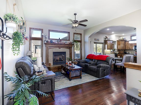 Are you looking for small town living while still being close to the city? This home is for you! This ranch style home on a quiet cul-de-sac boasts 5 bedrooms and 3.5 bathrooms. Upon entering the home, you will see lots of natural light, gas fireplace, and an open floor plan with wood flooring throughout the living room, dining and kitchen. The kitchen is lined with custom cabinets , granite countertops and a large island with extra casual eating space along with walk in pantry for tons of storage. Off the kitchen is both main floor laundry and a covered deck with easy access to the backyard. On the main floor you will also find three bedrooms including the large primary bedroom with an attached on suite bathroom and large walk-in closet. As you walk down to the basement you are welcomed with a large rec room with view out windows and wet bar. There is plenty of space for your family to spread out with an additional two bedrooms, bathroom and large unfinished storage room. The double bay garage is oversized and the third bay has been converted to a mancave/game room. It features a bar, cooling/heating unit, tile floor and a separate bathroom. This area is ideal for a workshop, hobby room, home office or can be easily converted back to garage use. No need to worry about extra storage for lawn equipment, recreational items and tools, the sellers have built a large 12x16 outdoor shed for easy access in the backyard.
