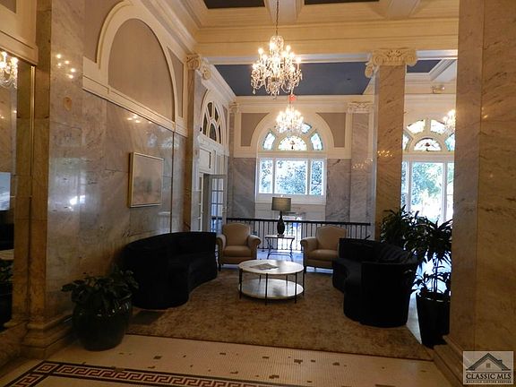 Gorgeous 1 BR 1 BA Unit on the 3rd floor in the Historic Georgian overlooking Downtown Athens which has views of the North Georgia mountains. This unit has one of the best layouts, locations in the building and views of all the one bedrooms! It has views toward the Appalachian Mts. which you can see on a clear day or with binoculars. This unit includes an open floor plan living and dining area. There are hardwood floors throughout the main living area, carpet in the bedroom, & tile in the bathroom. The kitchen features granite countertops, beautiful cabinetry and black appliances. This gorgeous unit has 9 ft. ceilings with elaborate crown molding & over-sized windows. One parking spot is provided for one bedroom units at the courthouse next to The Georgian. You can purchase a 2nd parking spot at the courthouse or at the College Ave. parking deck for $75 a month. Built in 1908, the Georgian Hotel was designed by Anthony Ten Eyck, the same individual who designed the courthouse next door. The Georgian was renovated in 1985 to become luxury downtown apartments & in 2007 was converted to condos. One of the finest hotels in its day, even the author Margaret Mitchell stayed here! The Georgian is 2 blocks from UGA's North Campus. Also, the downtown location is steps away from fine dining, shopping, Sanford Stadium for football, the Classic Center & the famous 40 Watt & Georgia Theater among other bars/lounges for the legendary music scene in the "Classic City"! The Georgian is a unique 34-unit property beautifully accented with stained glass windows, columns & walls made of marble & tile floors. The main floor includes a beautiful lobby and restaurant/lounge South Kitchen. Amenities include a Club Room which can be used by owners, covered parking, secure access for lobby and elevator for owners & a storage unit in the basement. The Georgian is a great investment and a great part of the history of downtown Athens. Whether you are looking to live downtown, your child is a UGA student, or you want a weekend crash pad to visit Athens for football games you have found the most exclusive place in downtown Athens! Please see the many photos of Unit 307 which include views to the Mountains which you can see on a clear, crisp day (or with binoculars) and views of downtown Athens. Unit 307 has a washer and dryer that comes with the unit. There is a lease in please until 8/1/2021 for $1,595/mo which will be assumed by the Buyer.