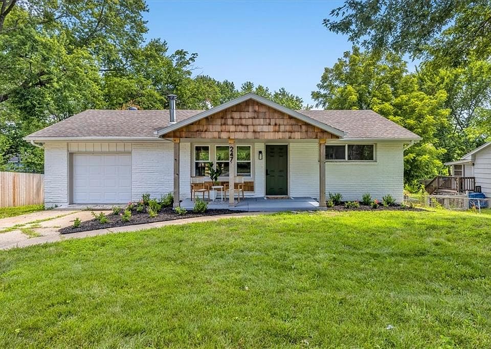 Located in quaint Claycomo, this completely remodeled ranch home has so much to offer. From the curb the fresh landscaping and a covered porch create an inviting entry; Pella windows, a newer roof and a new garage door leave no projects here. Step inside and find beautiful hardwood floors that flow through out the main level. The living room is open to the kitchen/dining area and is flooded with natural light. New cabinets, quartz countertops and a sizable pantry in the kitchen complement the open floor plan + the kitchen offers a sliding door out to the large multi-tier deck. In the primary bedroom there is all new recessed lighting, stunning tray ceiling and custom barn door to the en-suite that elevate the feel. The primary en-suite offers a large walk-in shower and all new fixtures and finishes. The secondary bedrooms and a newly remodeled guest bath with full tile surround complete the main level. On the lower level there is a 300+ sq ft rec room with new carpet and daylight window. Through the rec room is the laundry area and a large storage area. To the back is a secondary storage area that walks out to the expansive backyard. This storage room is the perfect place for a shop, lawn equipment or even a planting area for those with a green thumb. The backyard offers room for all types of activity or space for a Morton building. Located just south of the 435/35 exchange, this home offers the ability to be in Downtown KC in 15 minutes + a short drive to parks and neighborhood schools. New AC, siding, garage opener and new deck make this home truly turnkey.