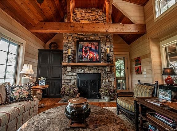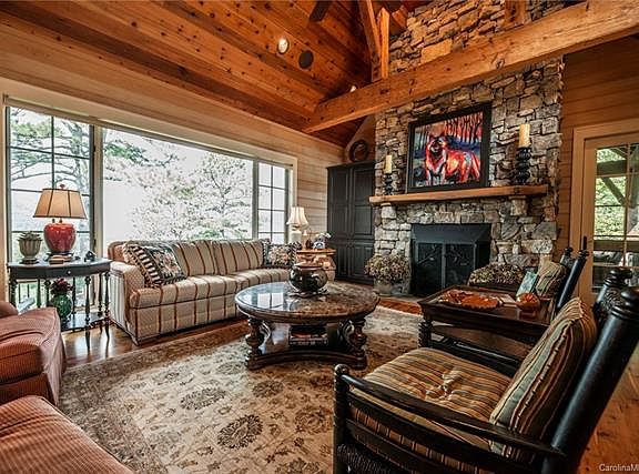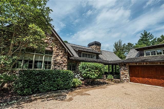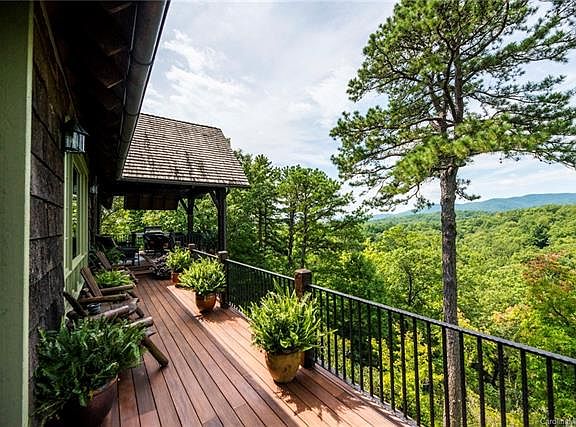 This PLATT designed home that is expertly constructed with the finest materials commands a rare north western view across Pisgah National Forest. The property is located in a very private section of Straus Park, within the city limits of Brevard, close to shopping, the hospital, and downtown. Cedar shake roof, stone and poplar bark siding, and hand hewn beams are just a few of the elements that are crafted to create an authentic mountain experience. Kitchen design features unique brick barrel-vaulted ceiling and a layout for hosting and entertaining. Two covered porches on the main level, connected by a deck, and the outdoor fireplace encourage time outdoors taking in the spectacular view. The primary bedroom on main level has two complete bathrooms. Lower level, accessible by elevator, has an office and climate controlled wine cellar and tasting room, and serves as all inclusive guest quarters with two bedrooms and baths, kitchen, dining and living area, plus a private porch.