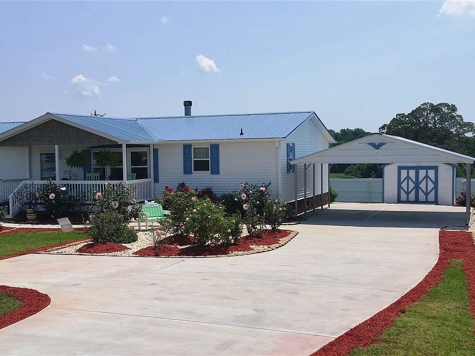 Like new home completely renovated 2 years ago! All new flooring, walls, electrical, lighting, 50 gal hot water heater, counter tops, custom cabinets, showers, vanities, porch, 2 decks, concrete driveway, carport, 12 x 16 shed with workbench, electricity and cabinets. All new storm doors and insulated windows. Beautiful 4 in baseboard and crown moldings and trim throughout the home. Sliding patio doors with internal blinds open onto deck. Beautiful stone fireplace with gas logs. Laminate flooring in master bedroom. Ceramic tile in foyer, bathrooms, kitchen and dining area. Tub sized showers in both bathrooms. Stone mailbox with decorative stone around it. All new landscaping with shrubs, bushes and roses. Seamless guttering that is piped directly into the ground. 6 ft. white wood fence on front & sides with black chain link fence and gate in front. All brick under pinning.