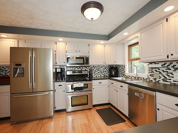 Back On The Market With a $5,000 Price Improvement! You will feel right at home as soon as you walk in the door in this beautiful spacious home located in a great quiet area. This immaculate well maintained lovingly cared for 3 bedroom Ranch awaits you. With all the comfort, style and space there is plenty of room for friends or family. On the main level the kitchen with stainless steel appliances has been updated with an attached dining area, a nice living room with natural light, a primary bedroom with a nice full bath & two additional bedrooms with oversized closets that have their own full bath. You can entertain on the large comfortable deck easily through the glass doors from the dining area looking out over the backyard and the gently babbling brook. In the finished walkout lower level you will find a large family room with a woodstove, a cute little kitchenette, laundry room, utility/storage room, a large office/possible 4th bedroom and the direct entry garage. In the fall of 2022 a brand new efficient propane heating system and hot water tank were installed plus conveniently stacked wood for the woodstove that is dry and ready to use. This home is located in a great country location yet minutes to I-93 exit 17 for your shopping and commute convenience. Snowmobile trails, walking trails are nearby as well as the river for fishing, canoeing & kayaking. You don't want miss this move in ready home and be home for the holidays!