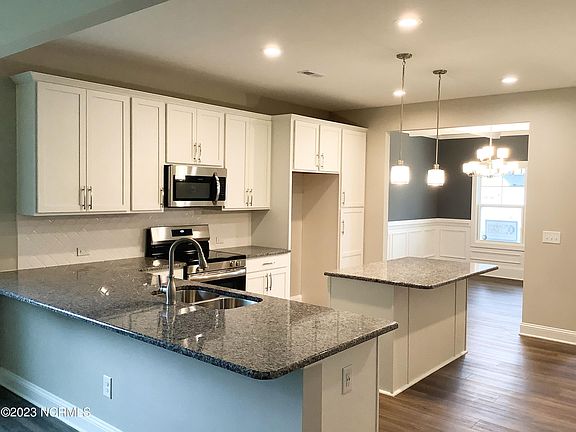 The Rivermist;Formal dining room painted in Sherwin Willaims ''Quiettude'' with coffered ceiling and picture frame wainscoting detail. Kitchen with breakfast area, island, granite countertops in ''Luna Pearl'', white shaker cabinets, subway tile backsplash in ''Desert Gray'' set in a brick pattern, spacious pantry, and butler pantry; Stainless steel microwave, dishwasher, and smooth top range. Great room with fireplace with decorative mantle and granite surround in ''Absolute Black'' with access to Carolina room; Spacious covered porch off the Carolina room. Half bath with pedestal sink, oval mirror, and tile flooring. Coat station in garage entryway. Second floor with black metal balusters. Second floor features the primary suite with tray ceiling and crown molding, two walk-in closets; Primary bathroom with dual sink with quartz countertop in ''Simply White'', Silver Grey shaker cabinets with center drawer stack, private water closet, tile shower with bench seating, and tile flooring. 3 additional bedrooms with access to hall bathroom with white dual vanity, tub/shower combination with tile surround, and tile flooring. Laundry room with washer/dryer connections and tile flooring; Hall linen closet Third floor with spacious loft, 5th bedroom, and full bathroom with vanity, tub/shower combination with tile surround and tile flooring. Durable luxury vinyl plank floors throughout the first floor in the foyer, formal dining room, great room, kitchen/breakfast area, and Carolina room. Front porch with front door painted in Sherwin Williams ''Dominio'' with transom window and sidelights providing additional lighting in the foyer. Low maintenance vinyl siding with board and batten accents and stone skirt; Dimensional roof shingles. 3 car front loading garage. .69 acre homesite! Energy Plus certified with a 1-2-10 year builder in-house warranty.