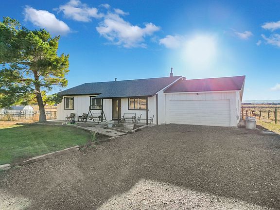 Welcome to this 3 bedroom 2 bathroom home that sits on 1.3 acres! The property is fully fenced with a portion fenced off for animals. Large front grass yard with mature trees, covered front and back patio, large metal roofed shed with power, and a fully framed room in the back of the garage for additional storage. Inside boasts all tile floors and a pellet stove that heats the whole home. Don't miss out!