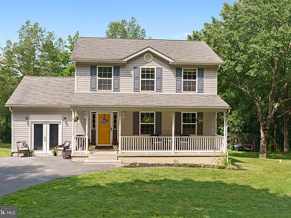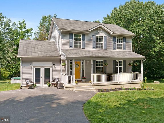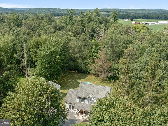 Discover your dream home in a tranquil, secluded setting! This charming 3BR/3.5BA Colonial, crafted in 2004, graces a breathtaking 1.88-acre lot w/ open fields, woods, & picturesque rural vistas. Located in Pleasant Valley School District. Step inside to find beautiful hardwood flooring throughout, stay comfortable year-round w/ the recently replaced central AC, living room w/ a cozy pellet stove, eat-in kitchen overlooks the expansive backyard, family room/den has been remodeled, perfect for extended family or guests. Additionally, it now features a brand-new fully tiled wet room that meets ADA compliance, offering convenience & accessibility for everyone. To provide seamless outdoor access, new French doors lead to the versatile flex space. A convenient half bath/laundry/mudroom. Upstairs, two bedrooms that share a main bathroom. Master bedroom boasts a private en-suite bathroom & WIC. Full unfinished basement. 2-car detached pole barn garage. This gem of a property provides an ideal location for commuters. 30 Mins from the Lehigh Valley, quick access to the PA Turnpike