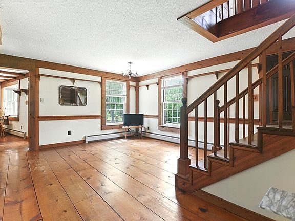 New England Colonial combines with popular open floorplan upon entering the spacious great room; combining living room, dining area and kitchen. Home is set majestically on 2+ rural acres with stream, stone retaining wall and a location that gives you convenient access to area colleges, universities, MassPike and highways to MA, CT, even NY urban areas! Lovely wide board floors and colonial style fireplace captures the historical charm with the modern benefits of a popular 1st floor bedroom and full bath, a family room or den, and a home office. Upstairs bedrooms and half bath, a screen porch and 2 car garage with room for work and storage make this a wonderful place to call home!