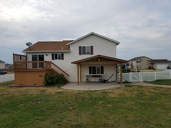 Pride of ownership shines throughout this extremely clean and well maintained home! Located in a great neighborhood and only a couple minutes to Ellsworth Air Force Base, Douglas Schools, and Interstate 90. This home features a large open concept main floor with vaulted ceilings, large kitchen, large dining room, a breakfast bar, access to your back deck with stairs down to your custom pergola. Upstairs you will find your large master suite with walk in closet and master bath as well as a second bedroom and bathroom. As you head downstairs in this home you will begin to realize how much space there is for everyone!! A large family room, 2 more bedrooms, a bathroom, a laundry room and access to the garage are all found downstairs. Outside you will find a nicely manicured lawn and landscaping with a sprinkler system and a large storage shed. Like to entertain?! Don't miss the custom built pergola out back!