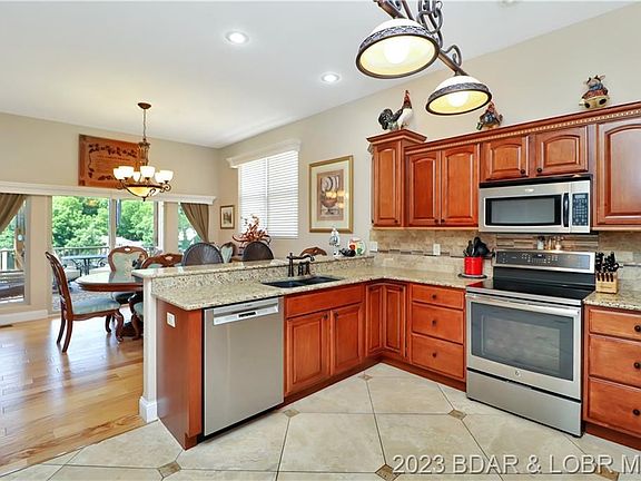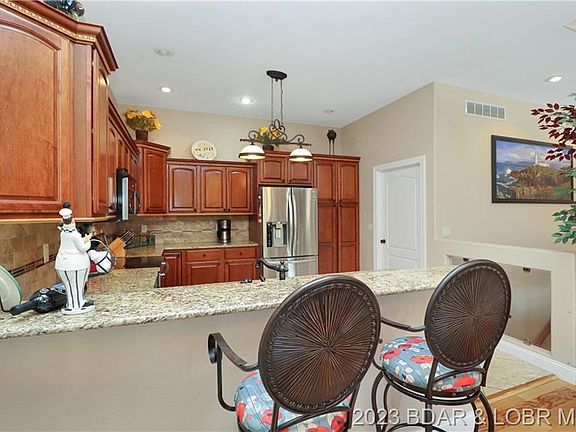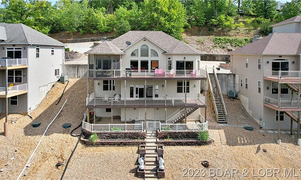 Walk in and enjoy soaring ceilings and a wall of lakeside windows overlooking quiet water cove with channel view. New Hickory flooring custom fireplace, create an inviting welcome. Main level spacious master suite, has it all walk-in shower and Tub and double vanities and large closet all create a comfortable suite. Lower level Family room provides family and friends a relaxed space to enjoy Movies, games and lake tales. Your guests will enjoy their lake time and feel comfortable in the second full guest suite, two additional bedrooms and full bath create space for everyone to. From the family room the second lakeside deck with Finished ceiling provides outdoor space no matter the weather. Just a few steps toward the lake and you'll find bonus space, separate from the house and close to the dock is a large space currently weight room, office and storage. Just a few more steps to two well concrete dock with 16x 44 cruiser slip, 2nd 12 x 32 boat slip and double PWC slip. Motivated seller