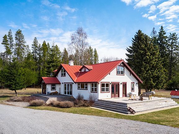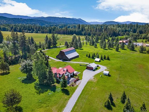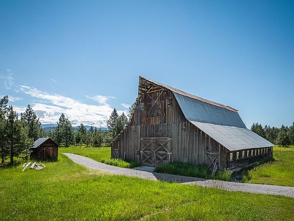 Situated on the north end of the Selle Valley, you will find a beautifully restored farm house on 20+ acres of wonderful, level horse property with panoramic mountain views, including full views of Schweitzer Mountain and the Cabinet Mountains. This house boasts a bright, open floor plan and hardwood floors throughout. Each room has abundant natural lighting. The kitchen is spacious with SS appliances, & concrete counter tops. The open floor plan of the living and dining room make it a perfect spot for entertaining. This property also features level pastures perfect for horses or other grazing animals. The outbuildings include a storage barn at the entrance and a 4000+SF turn or the century barn, along with a storage shed, and a 2-car detached garage.