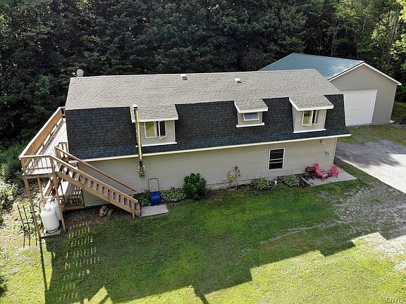 2688 sq ft home features 4 bedrooms, 2 1/2 baths and is located in a quiet county setting on over 25+ wooded acres. The downstairs welcomes you with a huge great room built with custom log accents and a pellet stove making for the perfect place to entertain. Come in from playing outside as you enter through the back deck that leads to your mudroom with a wood stove. As you walk up stairs you will find another living room, kitchen, 3 bedrooms, 2 full baths and formal dining room. The kitchen has tons of countertop & cabinet space making cooking easy plus it has a breakfast bar! Sit back and relax on your private upper back deck that expands the entire width of the home. 32x40 pole barn for parking the vehicles or toys in, plus plenty of storage with a built in loft. Steelhead fish from your own back yard with Blind Creek flowing through this amazing property. Or sit in your tree stands and watch the abundant wildlife. This is a one of a kind property, don't miss your opportunity!