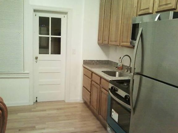 2 room condo on a calm tree lined square in Williamsburg. Second stop on the L train. 3 1/2 block from the train station. The condo has been revamped with new machines. It has a pleasant size family room, eat-in kitchen, encased patio with steps heading down to a shared back yard. The flat is accessible April first. Wage confirmation will be needed.CALL ME FOR EXCLUSIVE VIEWING15% BROKER FEE