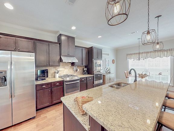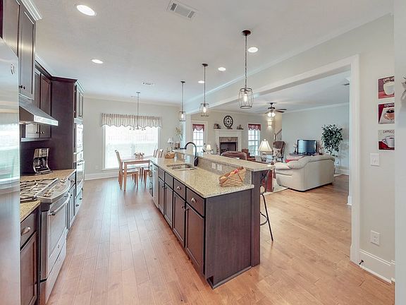 REDUCED! Beautiful all brick 3470 sq ft 5 bedroom 3.5 bath home with fabulous open floor plan, upgraded hardwood floors & screened porch with ceiling fan plus nice grilling patio overlooking privacy fenced backyard! Fantastic kitchen with granite counter tops, gas stove, wall oven, built in microwave, upgraded microwave & refrigerator, huge island with lots of seating, 2 pantries & breakfast room opening up to large living room with gas fireplace! Dining room with wainscoting! Owners suite 1st floor w/electric fireplace, double sink vanity, ceramic tile floor & shower, large tub, water closet & walk in closet! Spare bedrooms all great size! Spare baths all with upgraded ceramic tile floors! Laundry rm w/utility sink! Charming mud room w/bench seat, bead board & closet! 2 hot water heaters! Separate hvacs up & downstairs! Full sprinkler! 2 inch blinds! Prewired for security!