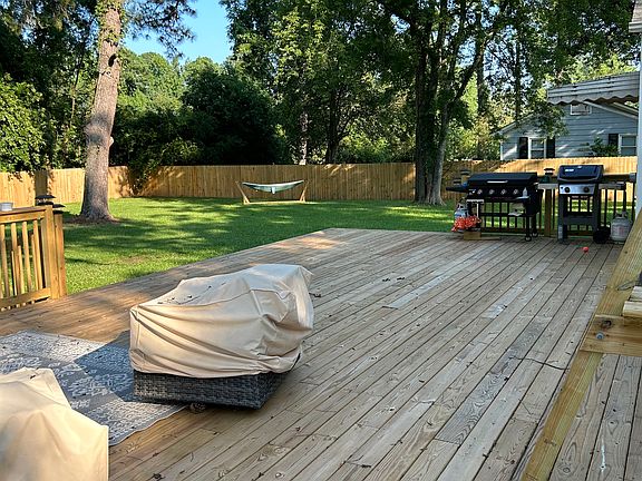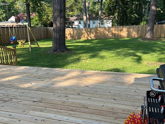 This home has one of the largest fenced-in backyards in the area. It features a large deck perfect for grilling, relaxing, or your daily morning coffee with nature. The fenced-in area includes a large grassy area (see pictures).