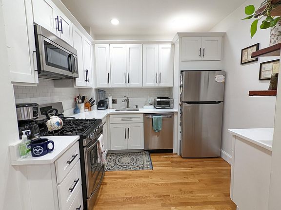 Available 9/1 - Beautiful 2 Bedroom Condo in Jeffries Point with renovated kitchen featuring custom white shaker cabinets, quartz countertops and stainless steel appliances, high ceilings, gleaming hardwood floors throughout, a spacious, high-end bathroom and washer/dryer in unit. Large rear deck looks over the common backyard perfect for patio furniture and grilling. TONS of storage space on the lower level. Steps to Piers Park, restaurants and shops, East Boston Greenway and Maverick Square T stop.