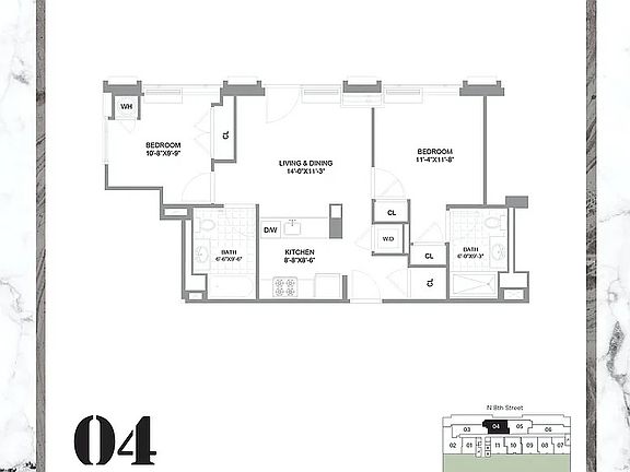 Make Williamsburg your home with this top-floor, two-bedroom, two-bath apartment with private outdoor space, tons of natural light, and open views! Apartment Features: - Washer/dryer in-unit - 9 ft. ceilings with bright & airy open spaces - Spacious, modern bathrooms w/ rain-style showerheads - Dishwasher - Open kitchens w/ stainless steel appliances Resident Services: - 24/7 doorman & on-site superintendent - Dog treats at reception Luxury Building Amenities: - Pet-friendly - Beautiful 13,000 sq. ft. courtyard - 2 furnished roof decks w/ inspiring city skyline views - 2 BBQ grills & outdoor dining table - TV lounge & library with complimentary Wi-Fi - State-of-the-art fitness center with Peloton indoor bike studio & yoga studio offering Fitness On Demand - Amazon Lockers - Bike room - Cellar storage is available - On-site indoor parking garage - Elevators