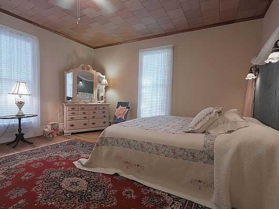 Current owner has done all of the work and this one is move--in ready. Rewired, replumbed and carpeting removed to reveal genuine hardwood floors. Fireplaces are non-functional but are still beautiful. Cellar has interior and exterior access. Two bedrooms downstairs. Two more bedrooms and sitting area upstairs is not vented for HVAC but window units would work, and there is a large floored attic area for storage. Detached 1 car garage plus an attached 2 car carport that doubles as a great covered patio. Shop/storage building out back with concrete floor and electricity. Great front porch with a swing. Lots of stately trees.