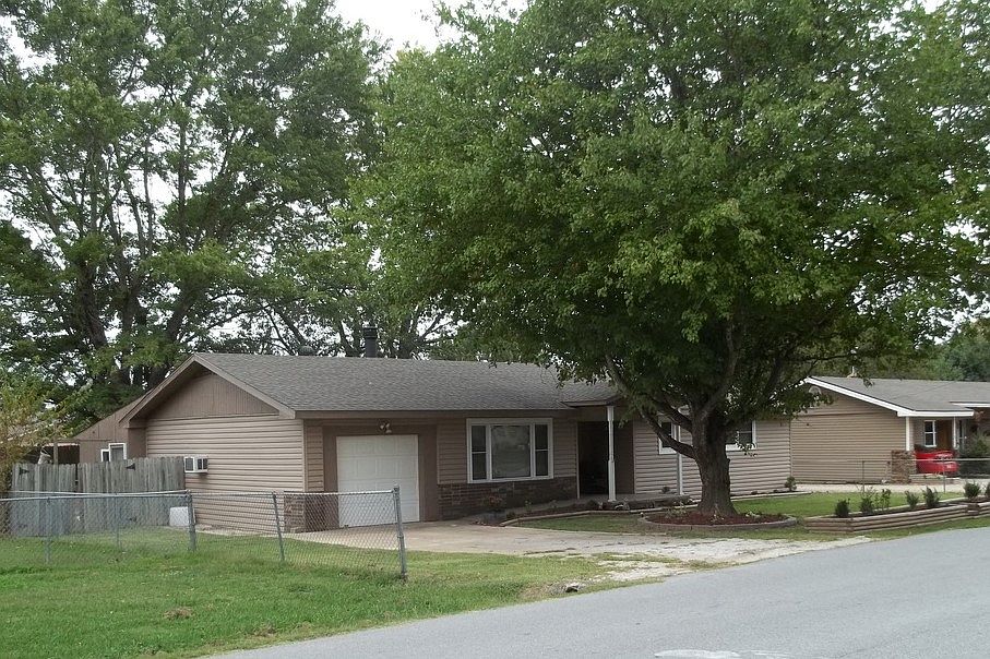 interior recently remodeled. house has central heat/air throughout (new HVAC 2014) - the window unit visible to left side of house cools the garage. fireplace in livingroom has woodburning insert w/blower. large extra room for bonus room, den, game room. includes 4-person hot tub, also master bath has large Jacuzzi tub. spacious laundry room. eat-at bar in kitchen. mature beautiful trees. nice back yard. storage building 12'x16'. refrigerator negotiable. small gas-log stove in bonus room doesn't convey. This lot is .24 acre