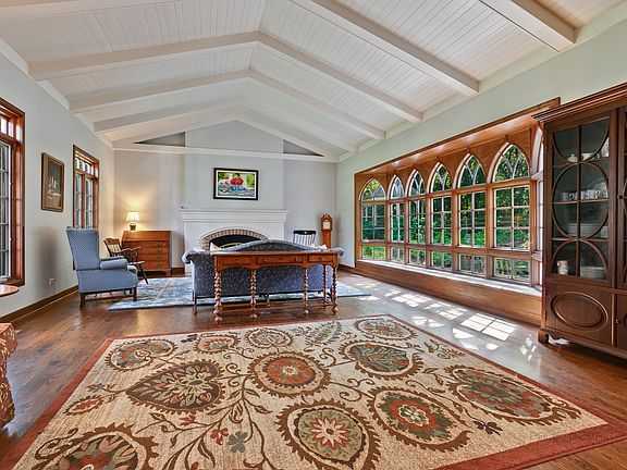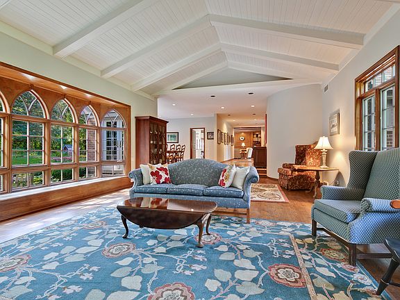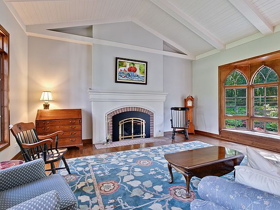 Wonderful Barrington Hills custom home is located on the 1st fairway of the Barrington Hills Country Club. Drive down the long winding drive to this private estate. The home features a lovely living room with a vaulted tongue and groove beamed ceiling, cathedral custom windows and fireplace. The dining room is very open. The gourmet kitchen has white cabinets, quartz counters, commercial grade appliances and a breakfast nook. The cozy family room boasts a beamed ceiling, brick fireplace, along with custom built ins. The library is set up as a private office for two. The 1st floor master suite features a dressing area and luxury bath with walk in shower & soaker tub. The upstairs has 3 nice size bedrooms sharing an oversized bath. The lower level is finished offering a rec room area, wet bar and full bath. The laundry is conveniently located on the 1st level. The roof was replaced in 2017. The grounds are exploding with beautiful landscape and a brick paver patio. A great place to call home on one of the most prestigious streets in town.